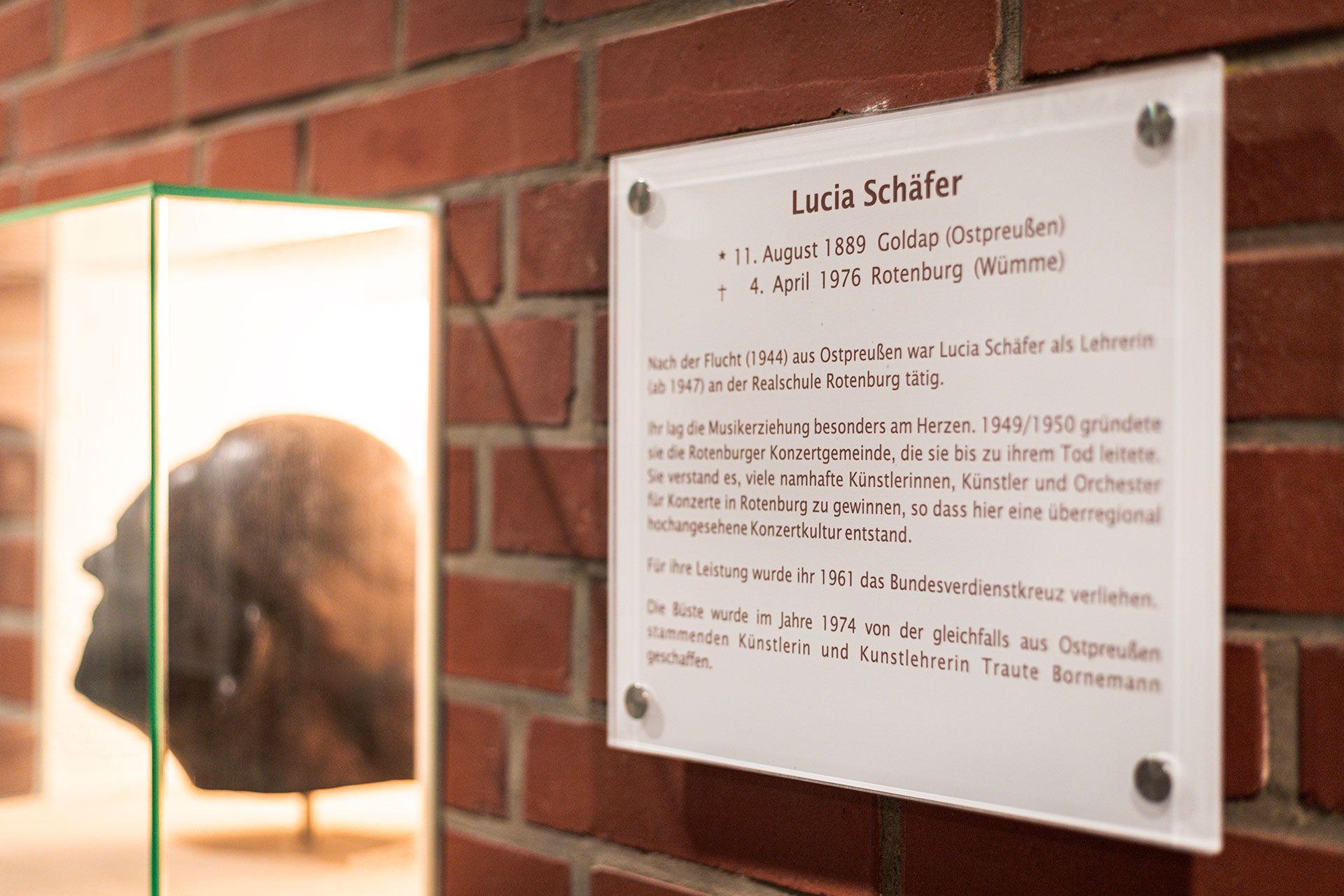 1950 wurde die Konzertgemeinde Rotenburg durch Lucia Schäfer begründet, sie konnte 1972 einen Bechstein-B-Flügel erstehen. 2018 ist die Aula nach Lucia Schäfer benannt worden. Der Flügel ist 2023 generalüberholt worden und Eigentum des Rotenburger Konzerte e. V. und soll dauerhaft auf der Bühne dieses besonderen Saales stehen. In seiner Größe ist dieser Flügel perfekt dem Lucia-Schäfer-Saal angepasst.